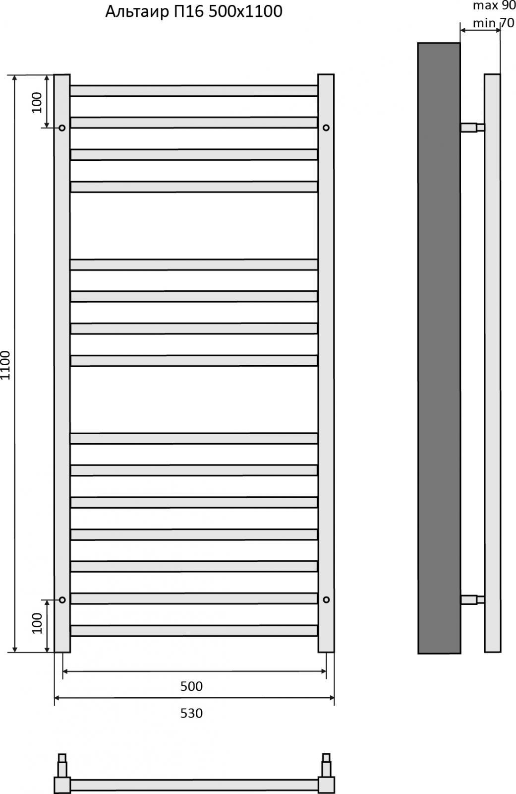 Полотенцесушитель водяной Aquatek Альтаир П16 500х1100 мм AQ KK1611BL, чёрный муар