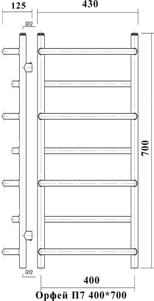 Полотенцесушитель водяной Domoterm Орфей, 7 перекладин, размер 430х700 мм, цвет хром.