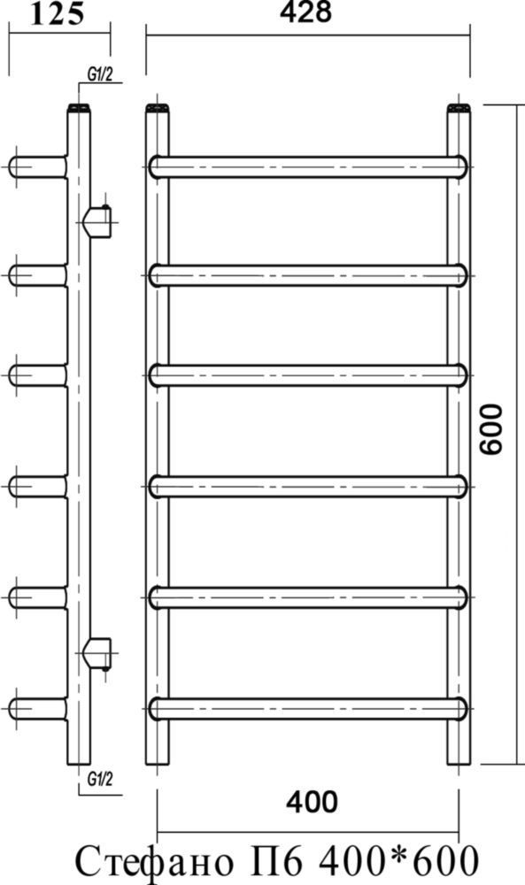Полотенцесушитель водяной Domoterm Стефано, 6 перекладин, размер 428х600 мм, цвет хром.