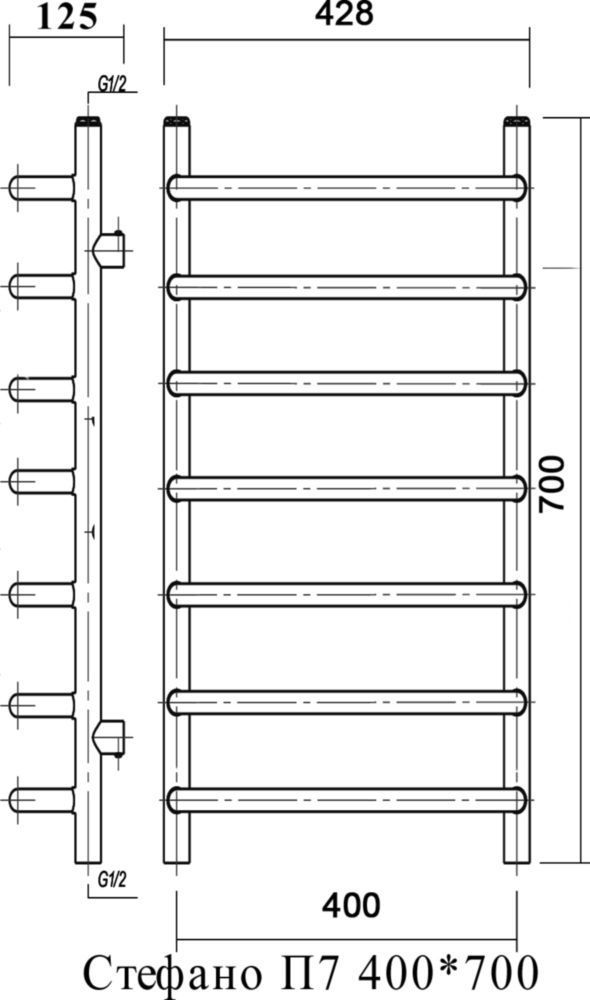 Полотенцесушитель водяной Domoterm Стефано, 7 перекладин, размер 428х700 мм, цвет хром.