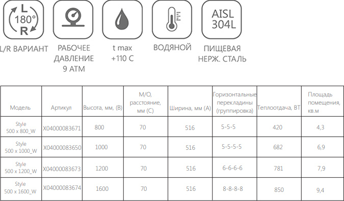 Полотенцесушитель водяной Ravak Style, 6+6+6+6 перекладин, нижнее подключение 1/2" BP, материал нержавеющая сталь, цвет хром.