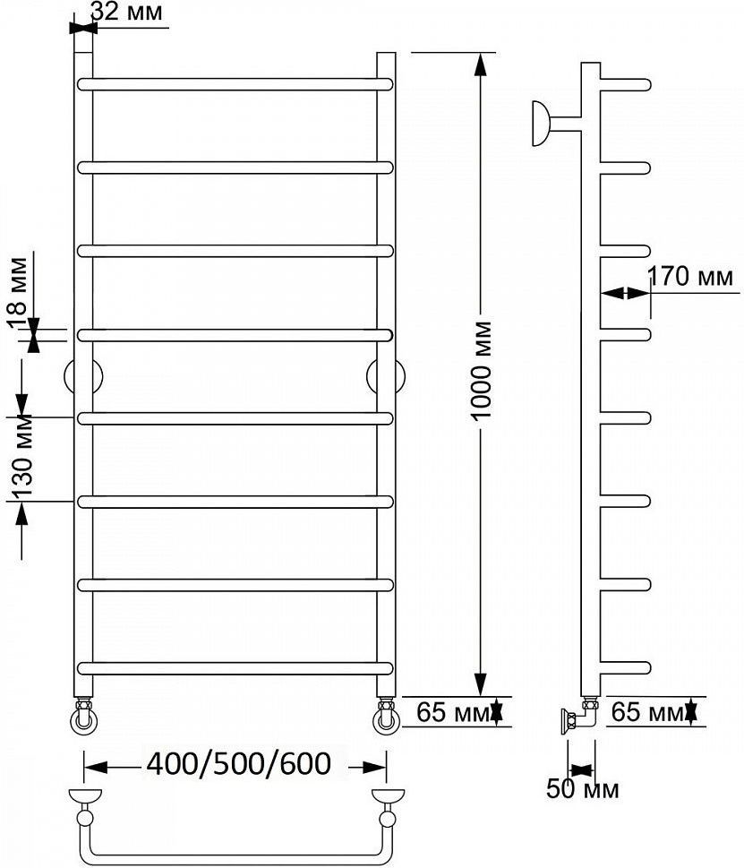Полотенцесушитель водяной Secado Мерида 1 П8 500x1000 мм, бронза