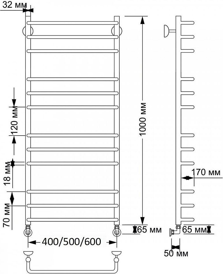 Полотенцесушитель водяной Secado Мерида 3 П12 500x1000 мм, бронза