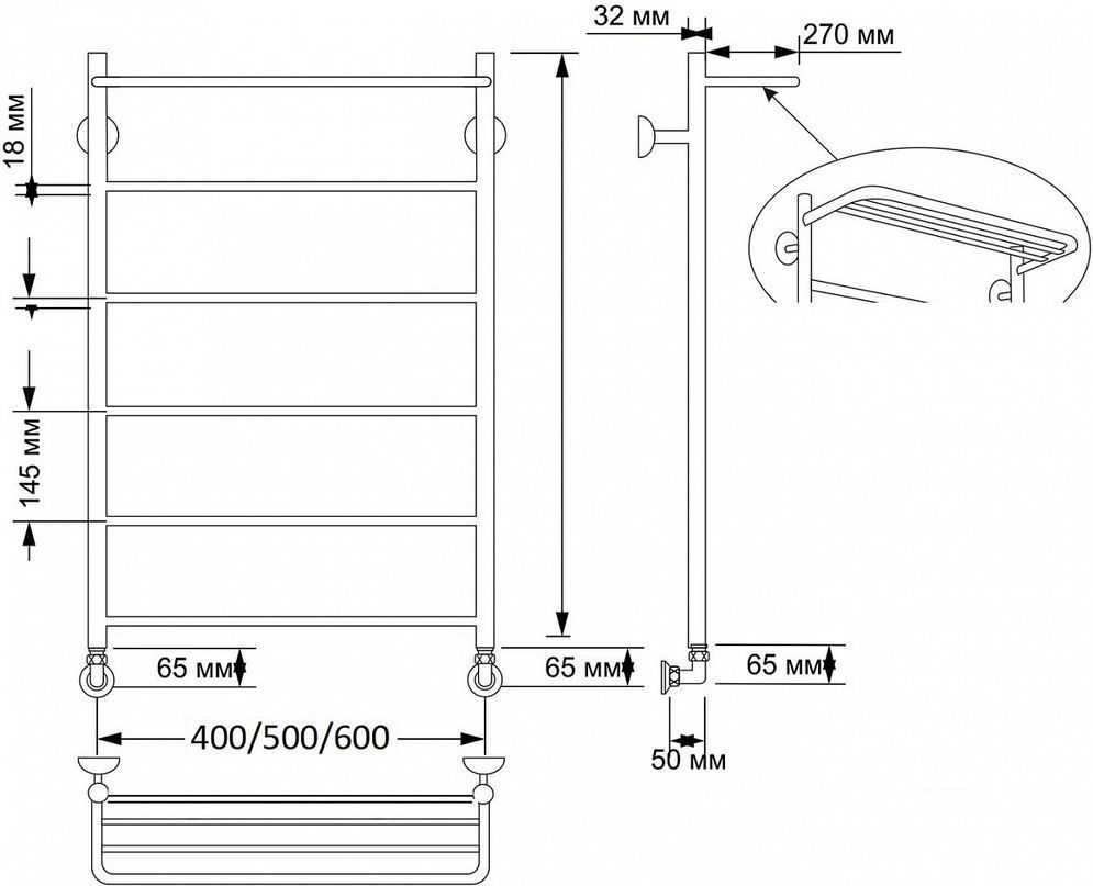 Полотенцесушитель водяной Secado Триада 4 с полкой П6 500x800 мм, бронза