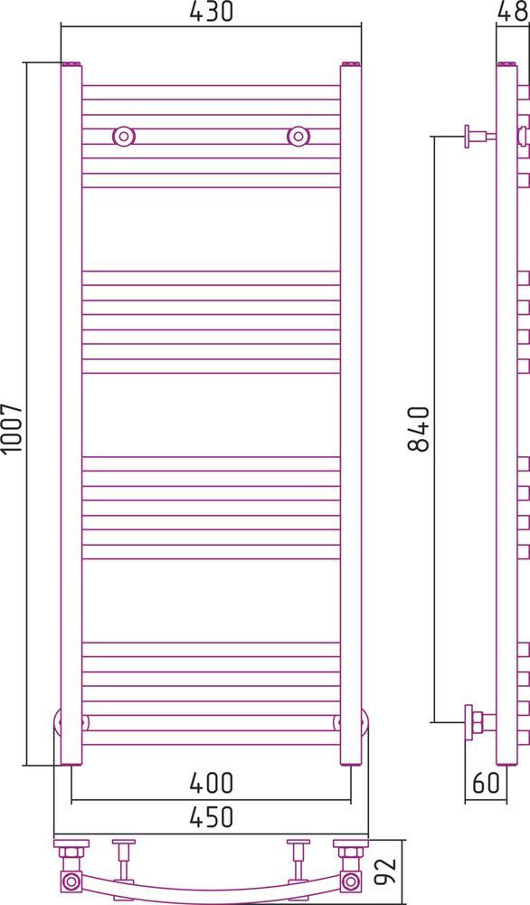 Полотенцесушитель проточный (водяной) Сунержа Аркус 1000х400 мм, 16 перекладин (4-4-4-4). Теплоотдача 666 Вт.