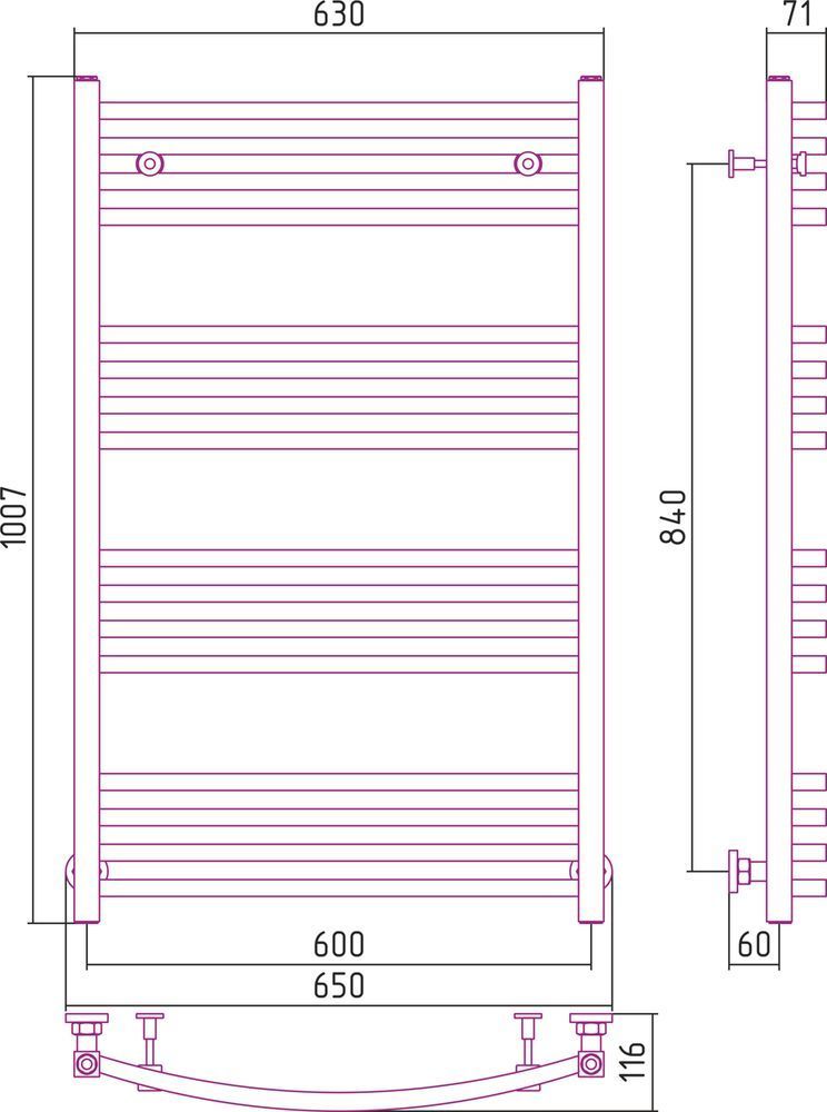 Полотенцесушитель проточный (водяной) Сунержа Аркус 1000х600 мм, 16 перекладин (4-4-4-4). Теплоотдача 912 Вт.