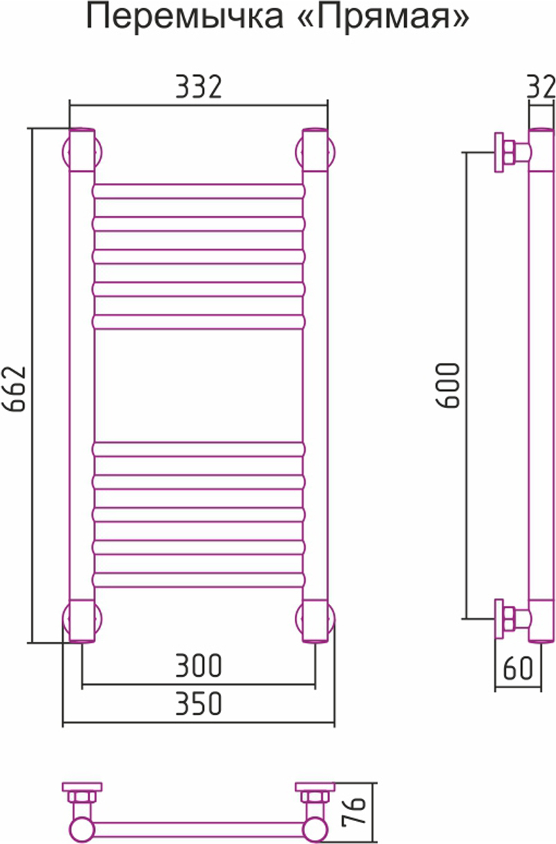 Полотенцесушитель водяной Сунержа Богема+ П10 600x300 мм (прямая перемычка) 00-0220-6030