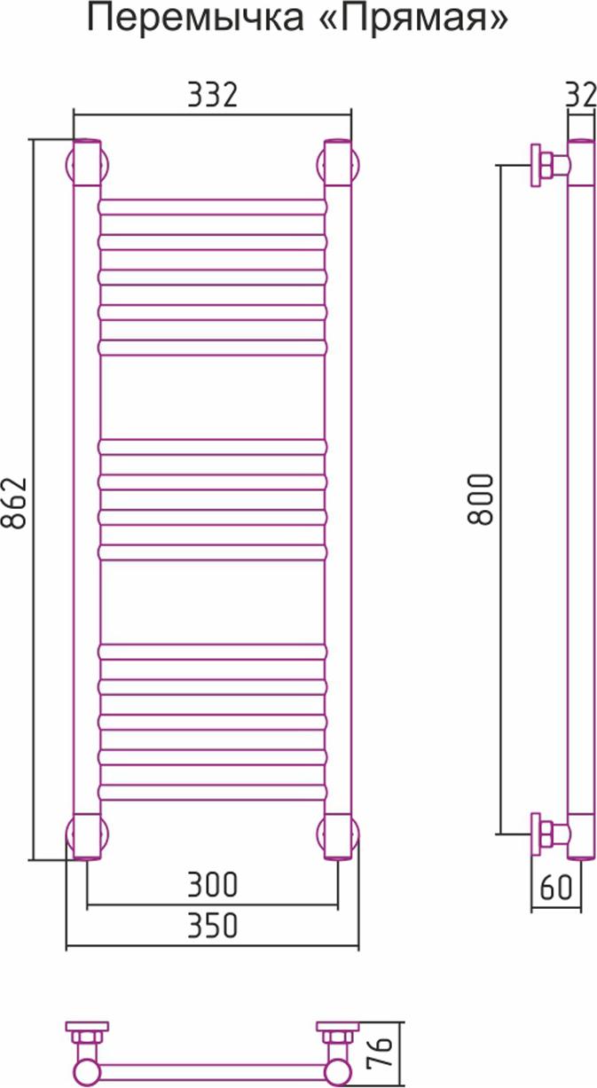 Полотенцесушитель водяной Сунержа Богема+ П14 800x300 мм (прямая перемычка) 00-0220-8030