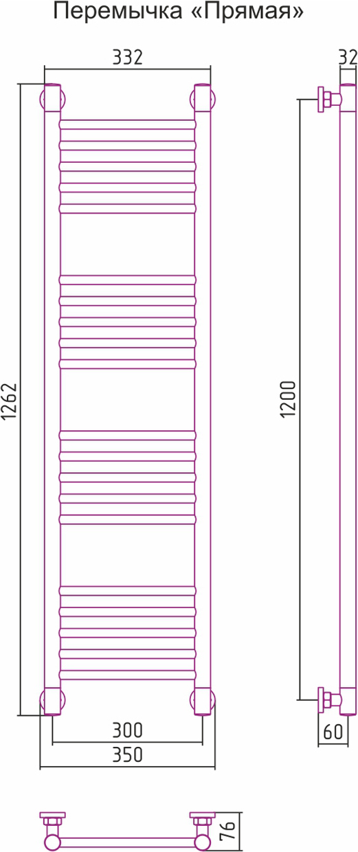Полотенцесушитель проточный (водяной) Сунержа Богема+ 1200х300 мм, 20 перекладин(5-5-5-5). Теплоотдача 503 Вт.