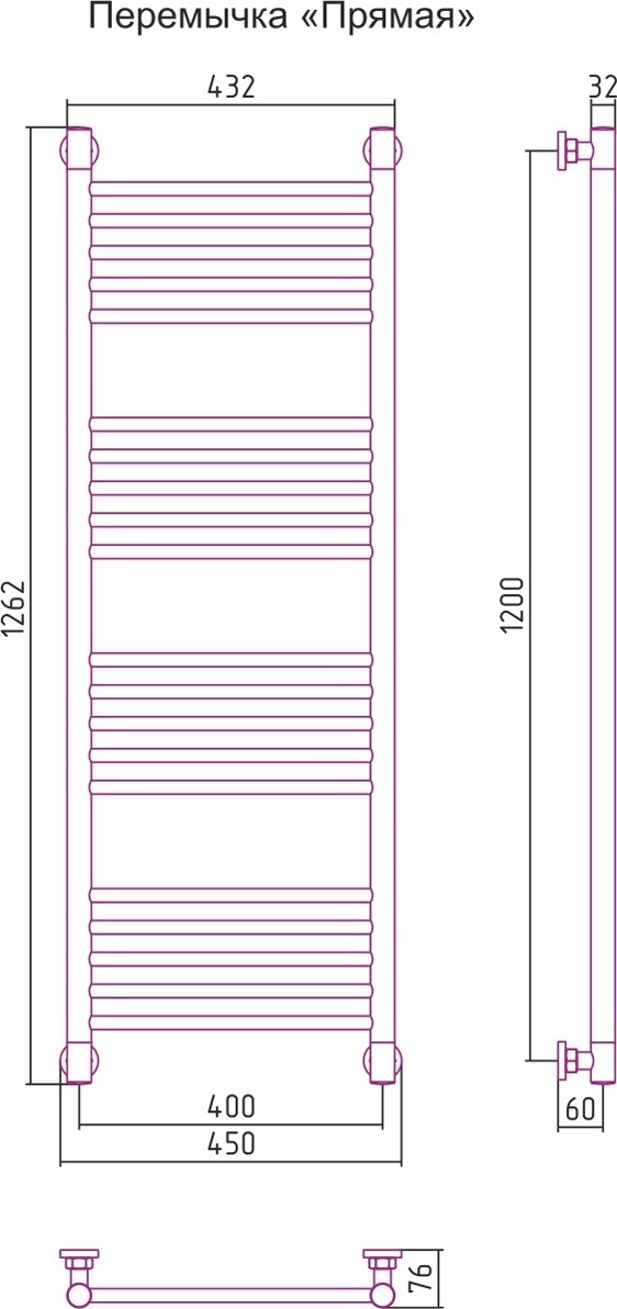 Полотенцесушитель проточный (водяной) Сунержа Богема+ 1200х400 мм, 20 перекладин(5-5-5-5). Теплоотдача 617 Вт. Цвет сатин.
