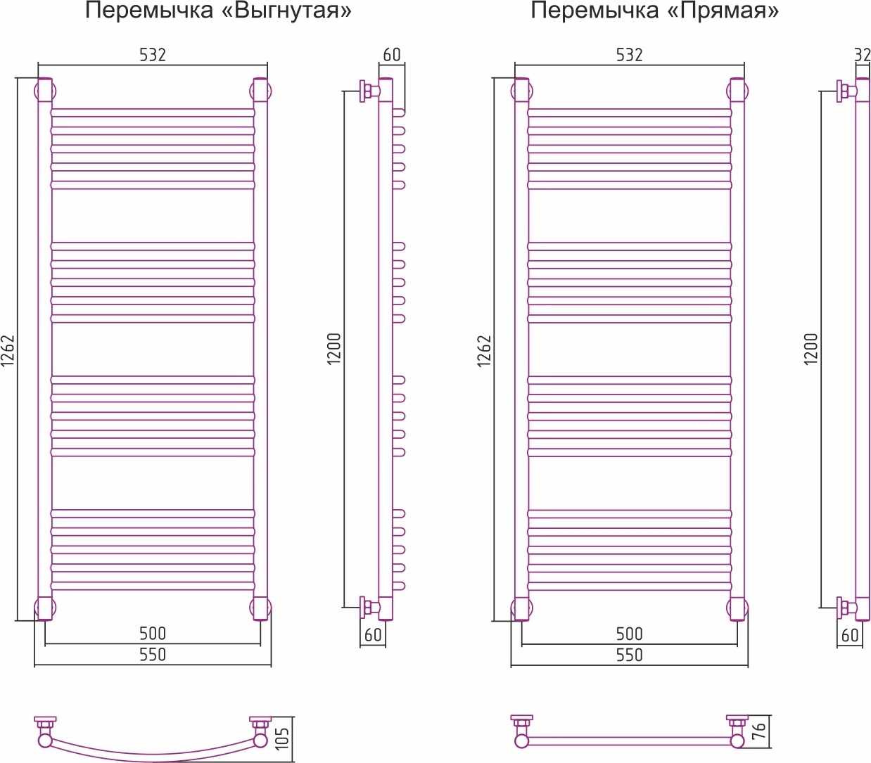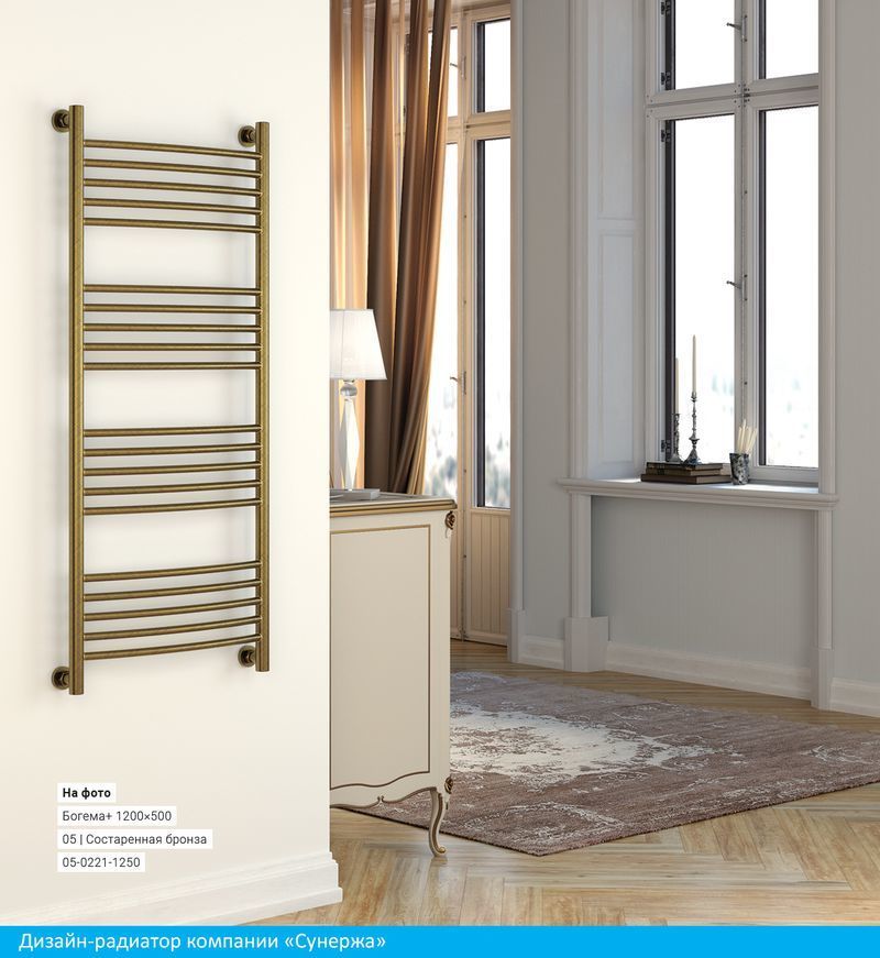Полотенцесушитель проточный (водяной) Сунержа Богема+ 1200х500 мм, 20 перекладин(5-5-5-5). Теплоотдача 726 Вт. Возможно исполнение с выгнутой перемычкой.