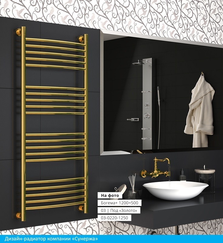 Полотенцесушитель водяной Сунержа Богема+ П20 1200x500 мм (прямая перемычка) 00-0220-1250