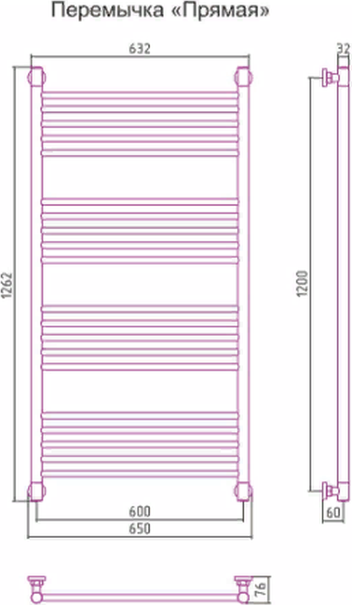 Полотенцесушитель проточный (водяной) Сунержа Богема+ 1200х600 мм, 20 перекладин(5-5-5-5). Теплоотдача 834 Вт. Цвет белый. Возможно исполнение с выгнутой перемычкой.
