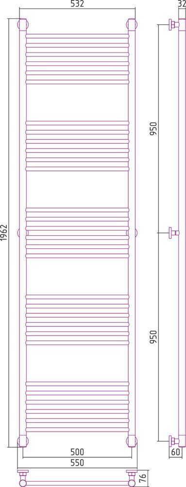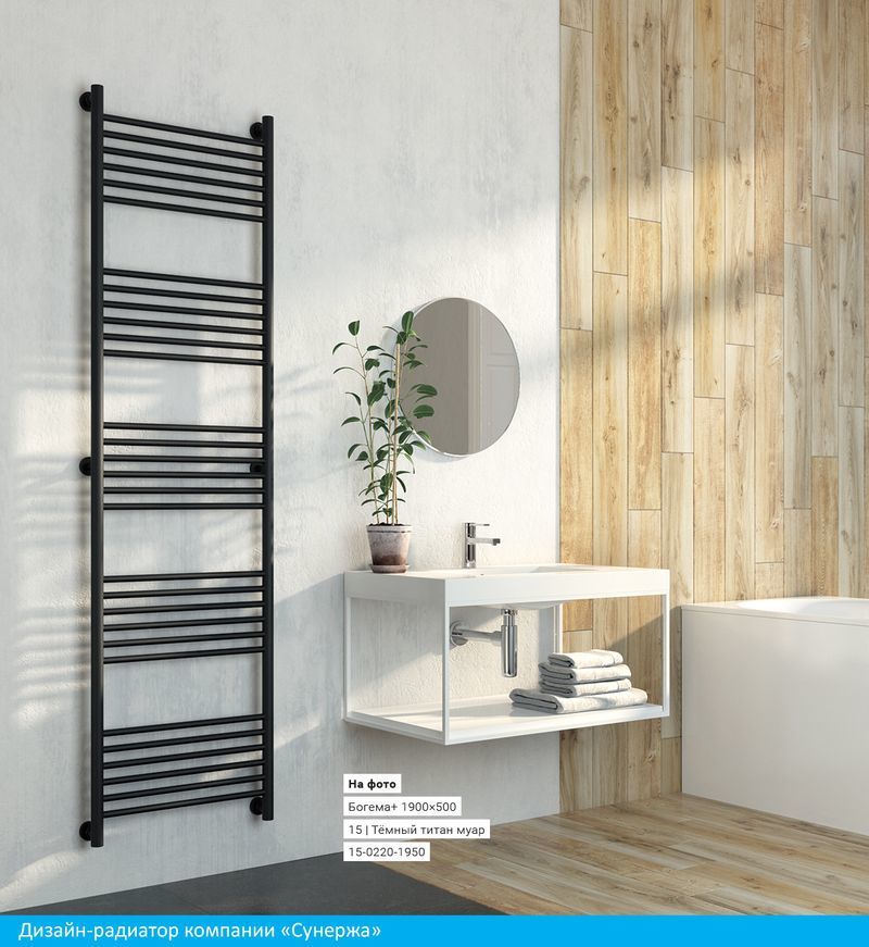Полотенцесушитель проточный (водяной) Сунержа Богема+ 1900х500 мм, 30 перекладин(6-6-6-6-6). Теплоотдача 1112 Вт. Возможно исполнение с выгнутой перемычкой.