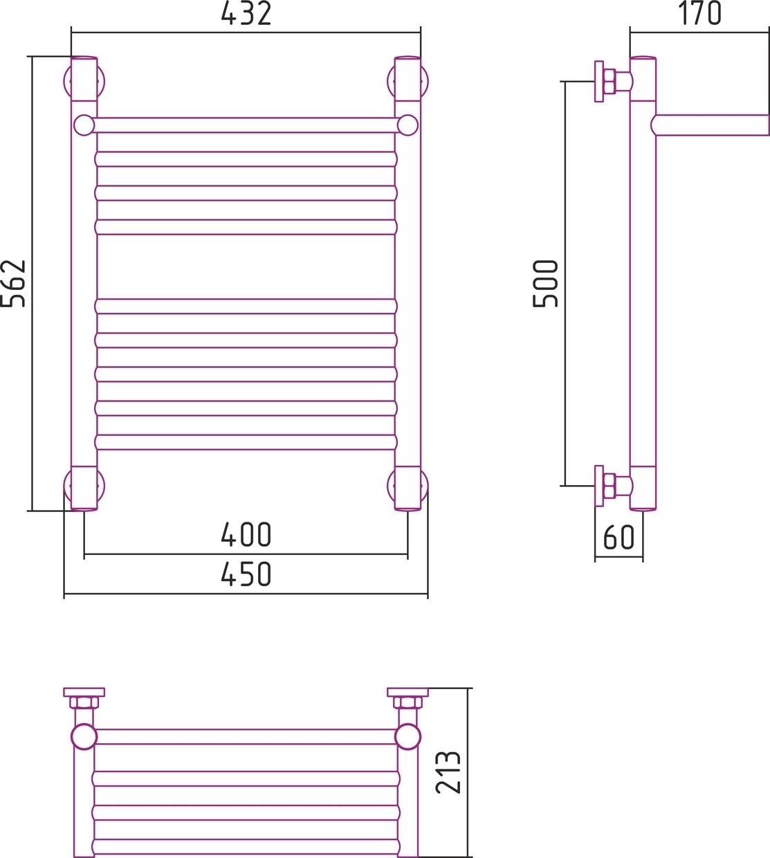 Полотенцесушитель проточный (водяной) Сунержа Богема с полкой+ 500х400 мм, 9 перекладин(4-5). Теплоотдача 243 Вт.