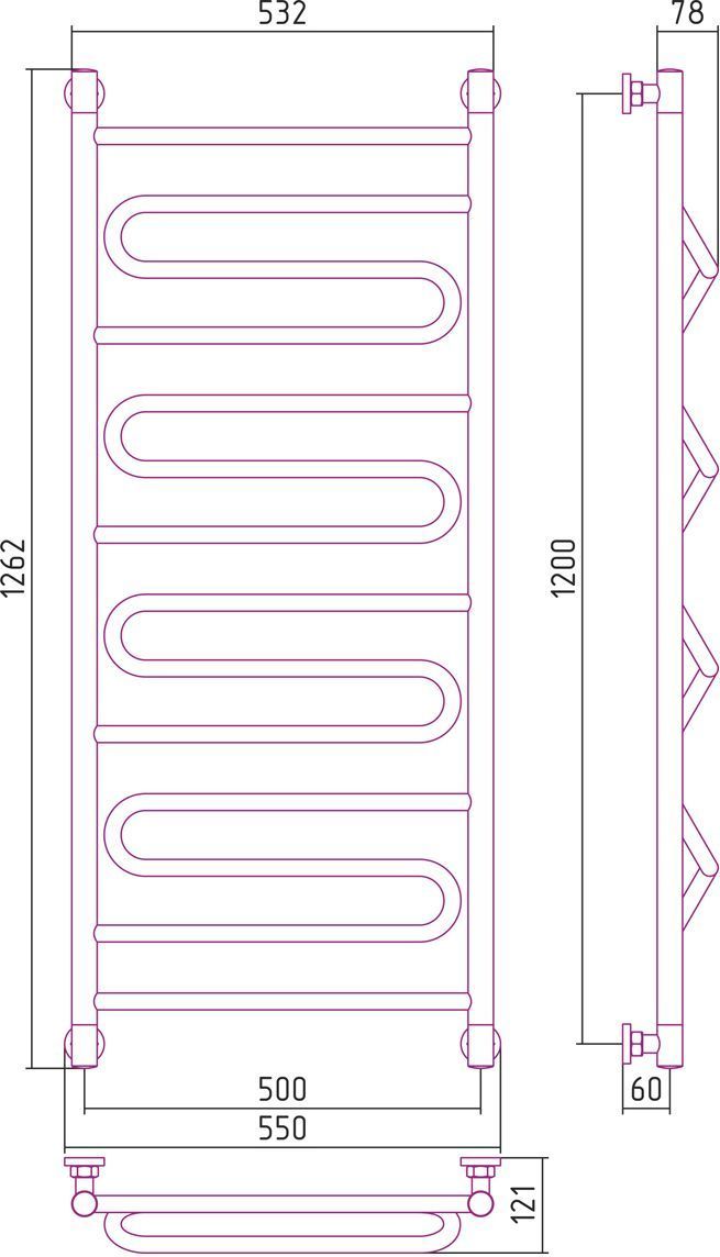 Полотенцесушитель водяной Сунержа Элегия+ 1200х500 мм, 14 перекладин. Теплоотдача 547 Вт.