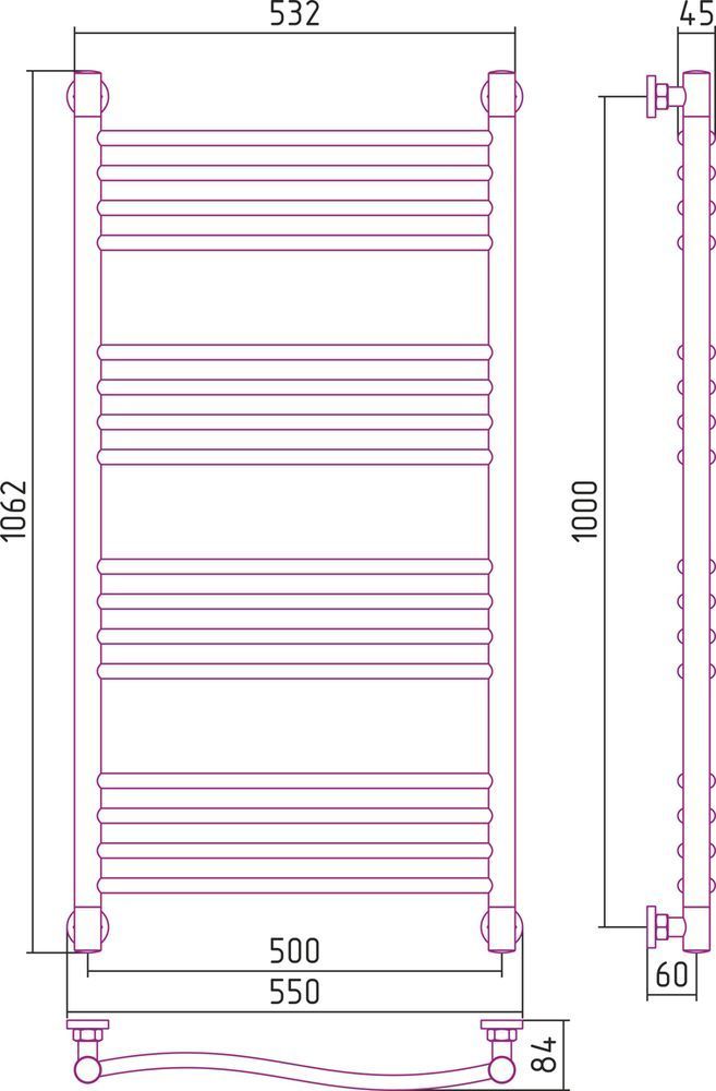 Полотенцесушитель проточный (водяной) Сунержа Флюид+ 1000x500 мм, 16 перекладин(4-4-4-4). Теплоотдача 583 Вт.