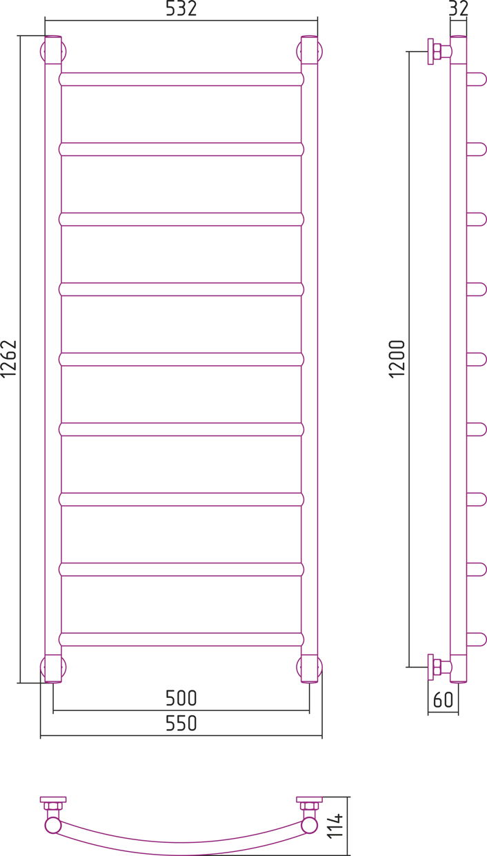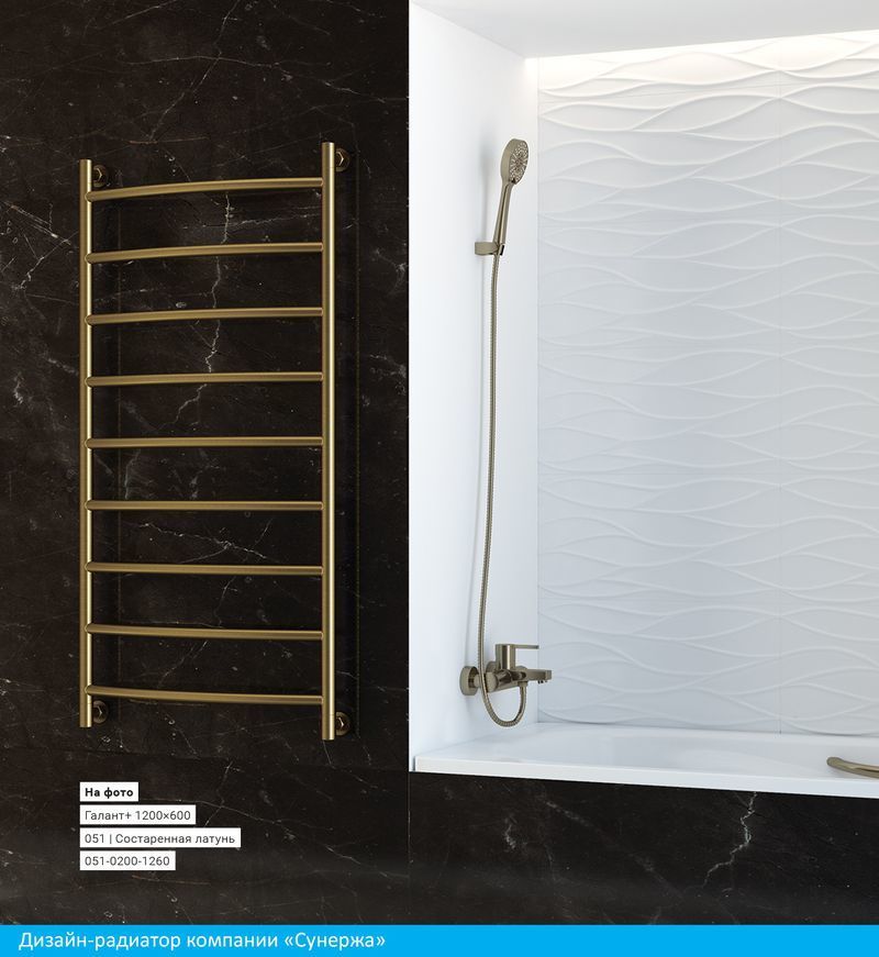Полотенцесушитель проточный (водяной) Сунержа Галант+ 1200х500 мм, 9 перекладин. Теплоотдача 502 Вт.