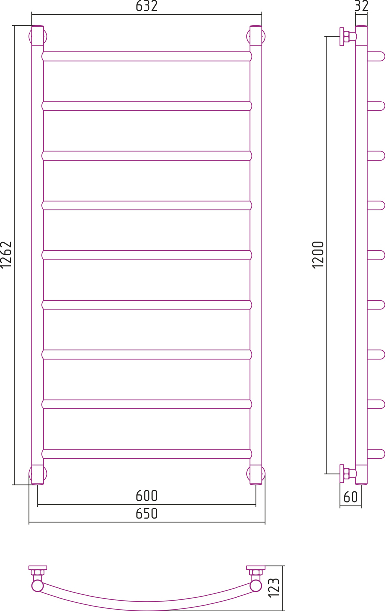 Размер полотенцесушителя - мм