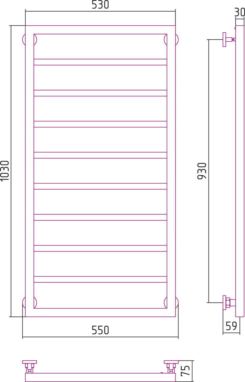 Полотенцесушитель проточный (водяной) Сунержа Канцлер 1000х500 мм, 8 перекладин. Теплоотдача 535 Вт. Цвет белый матовый.