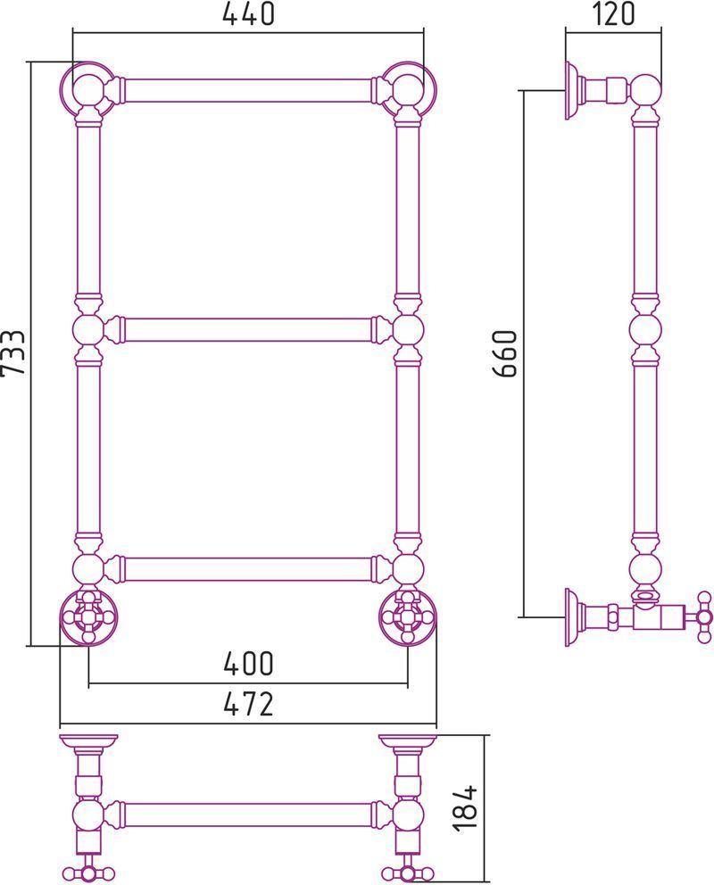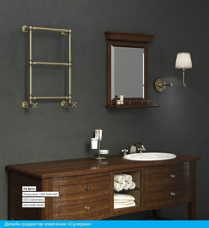 Полотенцесушитель водяной Сунержа Ренессанс 1304 660х400 мм, 3 перекладины. Теплоотдача 162 Вт.