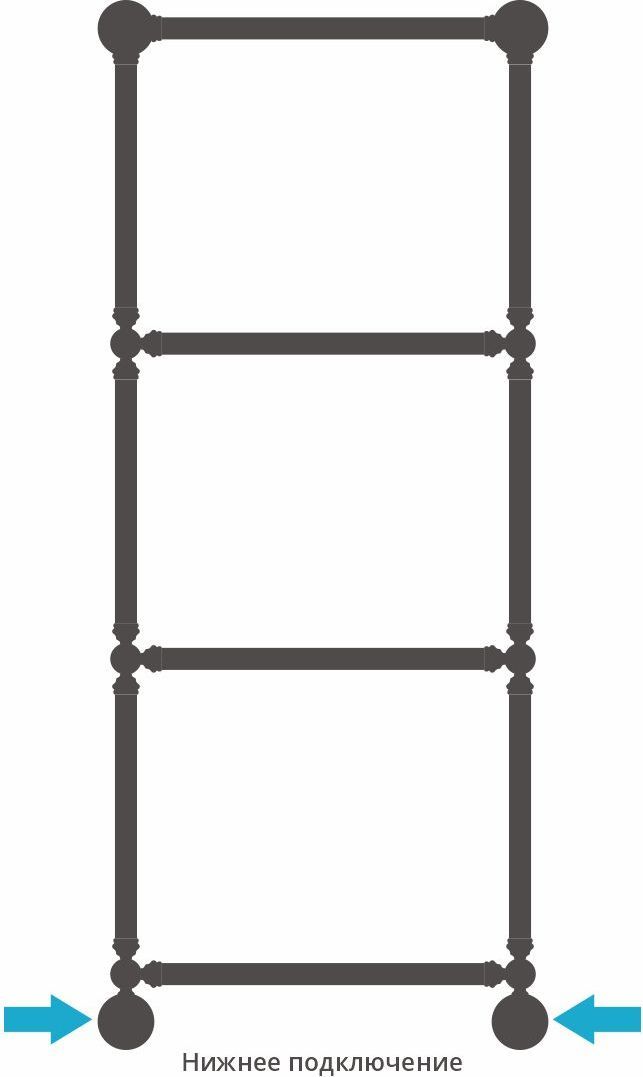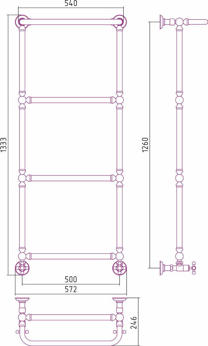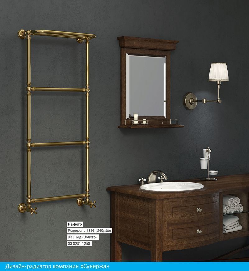 Полотенцесушитель водяной Сунержа Ренессанс 1386 с полкой 1260х500 мм, 4 перекладины. Теплоотдача 339 Вт.