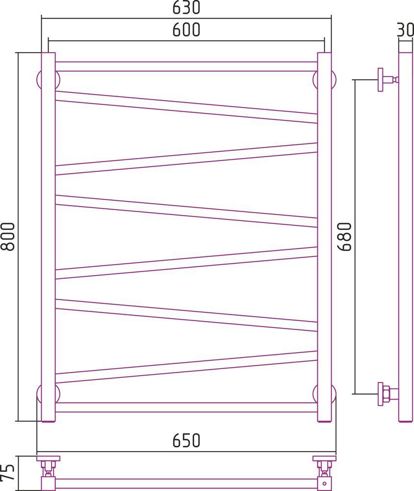Полотенцесушитель проточный (водяной) Сунержа Сирокко 800x600 мм, 8 перекладин. Теплоотдача 512 Вт.