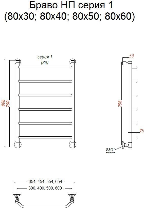 Водяной полотенцесушитель из 1 серии «Браво» — модель нового поколения. На выбор доступно 14 вариантов оборудования разных размеров — от 60х30 до 120х60 см. На одном изделии размещено от 4 до 8 перекладин трапециевидной формы, размещенных на одинаковом друг от друга расстоянии.