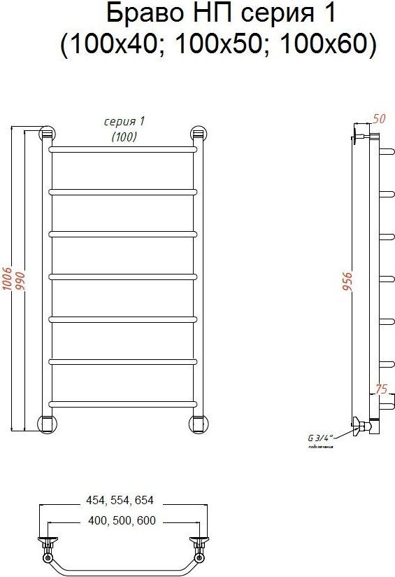 Водяной полотенцесушитель из 1 серии «Браво» — модель нового поколения. На выбор доступно 14 вариантов оборудования разных размеров — от 60х30 до 120х60 см. На одном изделии размещено от 4 до 8 перекладин трапециевидной формы, размещенных на одинаковом друг от друга расстоянии.