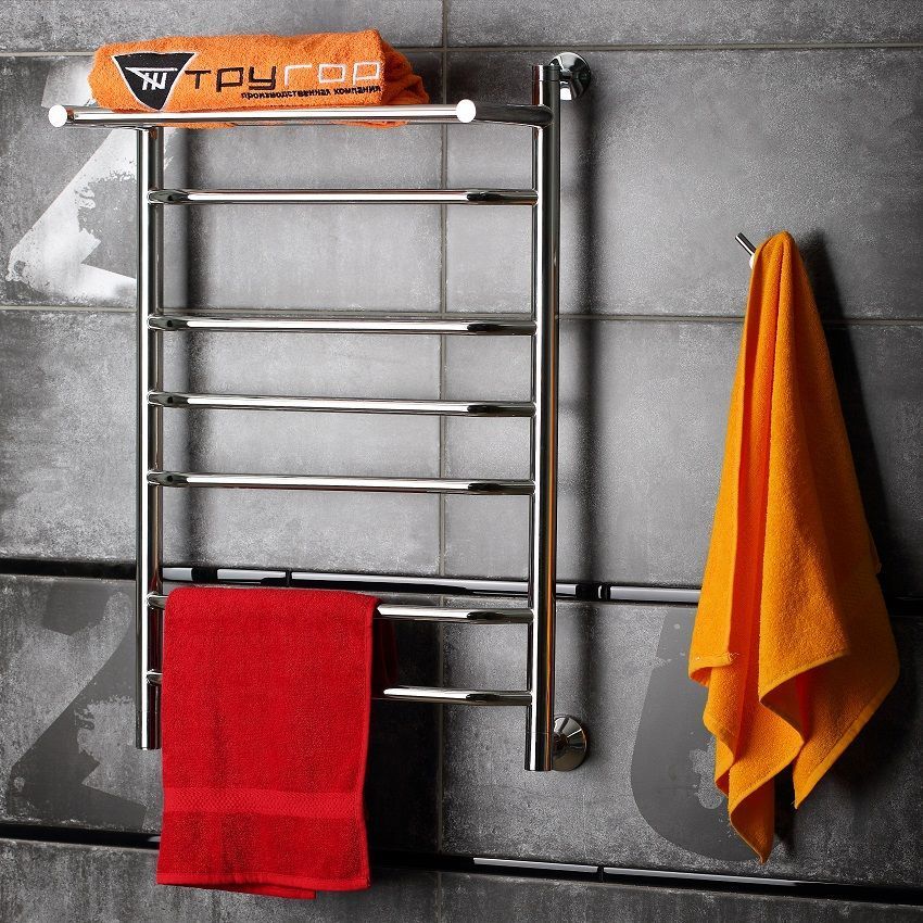 Полотенцесушитель водяной Тругор Браво с полкой, 7 перекладин, цвет хром. Индивидуальное изготовление в разных цветах и размерах. Внимание! Уважаемые покупатели, вентиль приобретается отдельно!