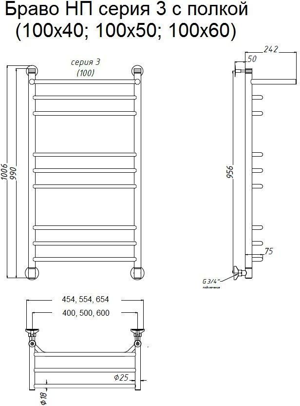 Полотенцесушитель водяной Тругор Браво с полкой, 9 перекладин, цвет хром. Индивидуальное изготовление в разных цветах и размерах. Внимание! Уважаемые покупатели, вентиль приобретается отдельно!