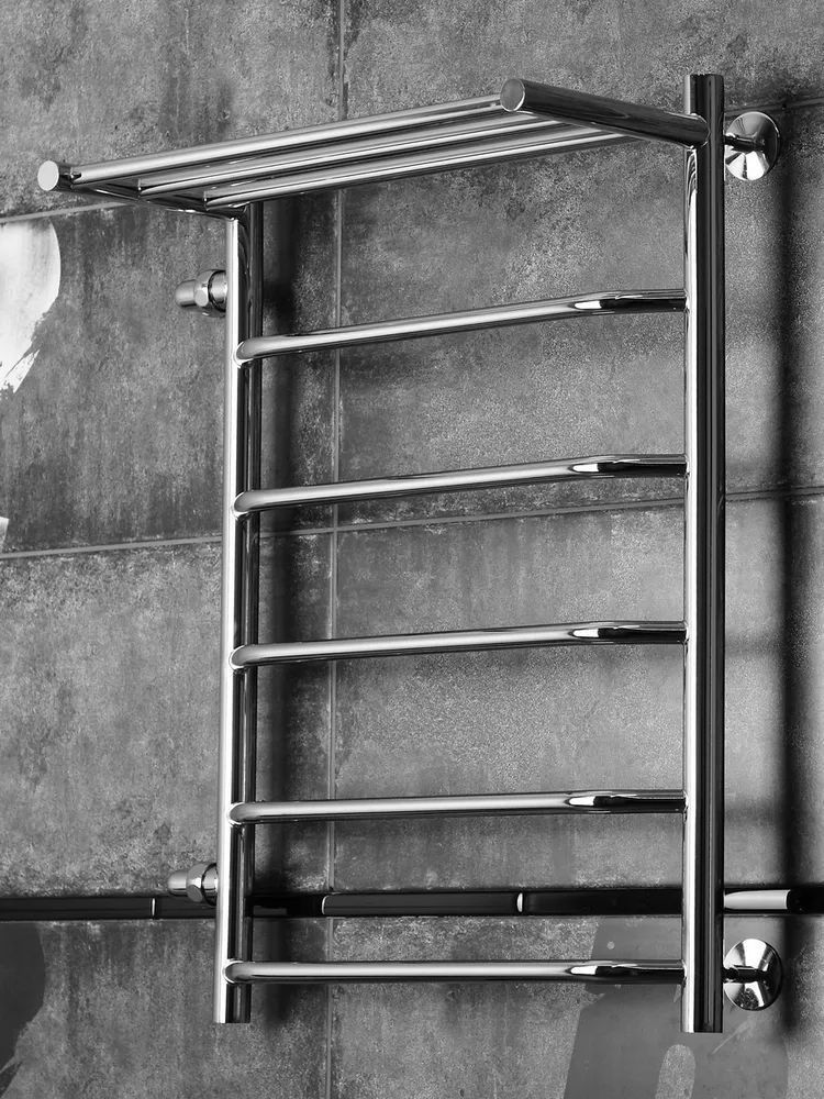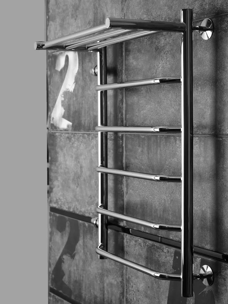 Полотенцесушитель водяной Тругор Браво с полкой и боковым подводом, 6 перекладин, цвет хром. Подключение левое.
