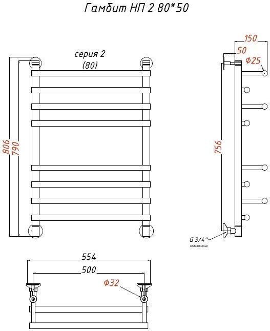 Полотенцесушитель водяной Тругор Гамбит НК2 П8 500x800 мм 00-00021688