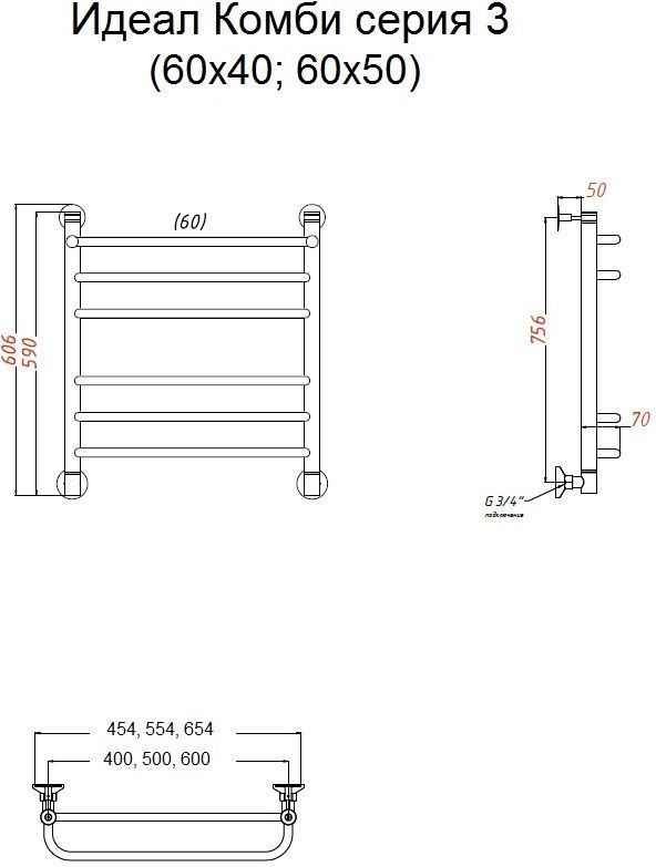 Водяной полотенцесушитель нового поколения «Идеал Комби» — усовершенствованная модель полотенцесушителя. Изделие комбинированное, имеет 2-3 прямые перекладины и 4-6 перекладин, расположенных под прямым углом, которые находятся на разном расстоянии. Размерных вариантов модели 7 — от 60х40 до 100х50 см.
