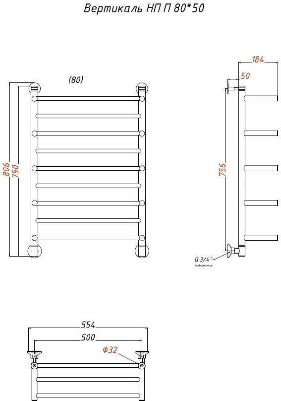 Полотенцесушитель водяной Тругор Вертикаль НК с полкой П9 500x800 мм 00-00021855