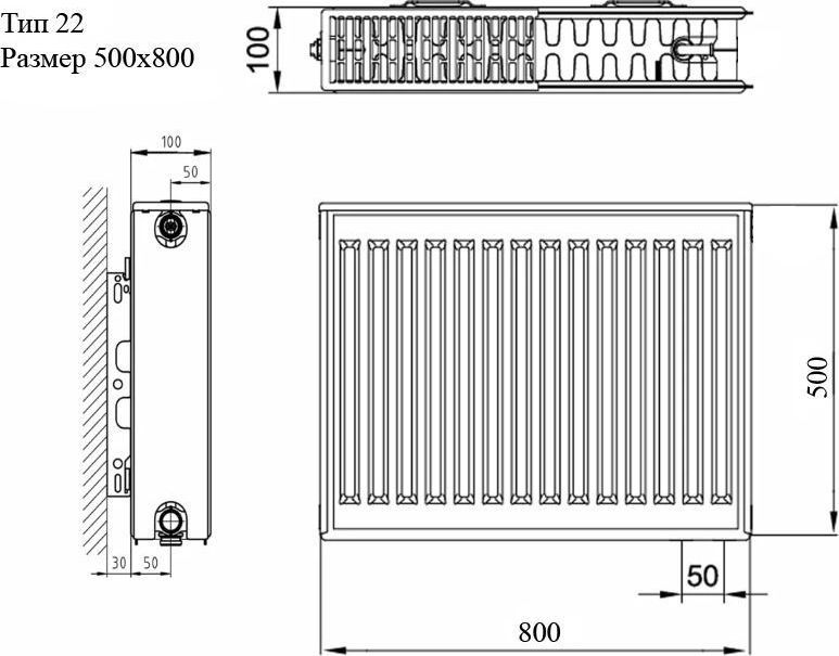 Радиатор Azario AZ-C22-500-800, размер 800х500 мм, цвет белый.