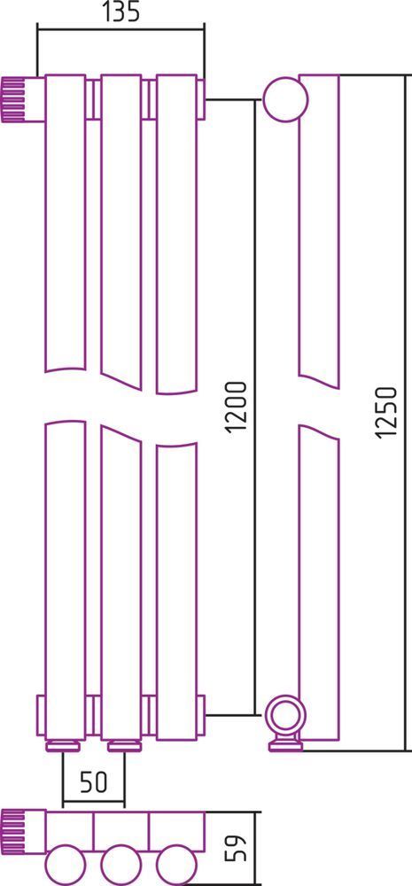Радиатор Сунержа Эстет-1 135х1200 мм (3 секции) 00-0310-1203 нижнее левое подключение