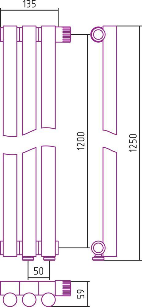 Радиатор Сунержа Эстет-1 135х1200 мм (3 секции) 00-0311-1203 нижнее правое подключение