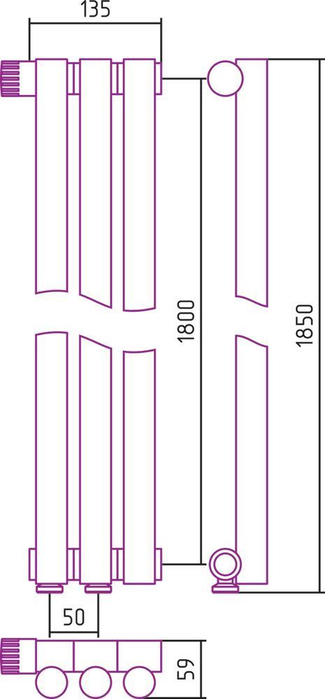 Радиатор Сунержа Эстет-1 135х1800 мм (3 секции) 00-0310-1803 нижнее левое подключение