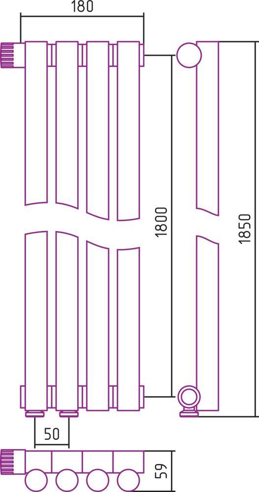 Радиатор Сунержа Эстет-1 180х1800 мм (4 секции) 00-0310-1804 нижнее левое подключение