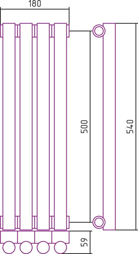 Радиатор Сунержа Эстет-1 180х500 мм (4 секции) 00-0301-5004 универсальное подключение