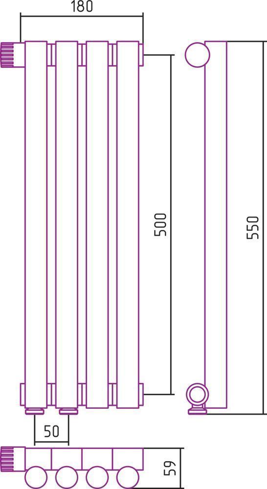 Радиатор Сунержа Эстет-1 180х500 мм (4 секции) 00-0310-5004 нижнее левое подключение