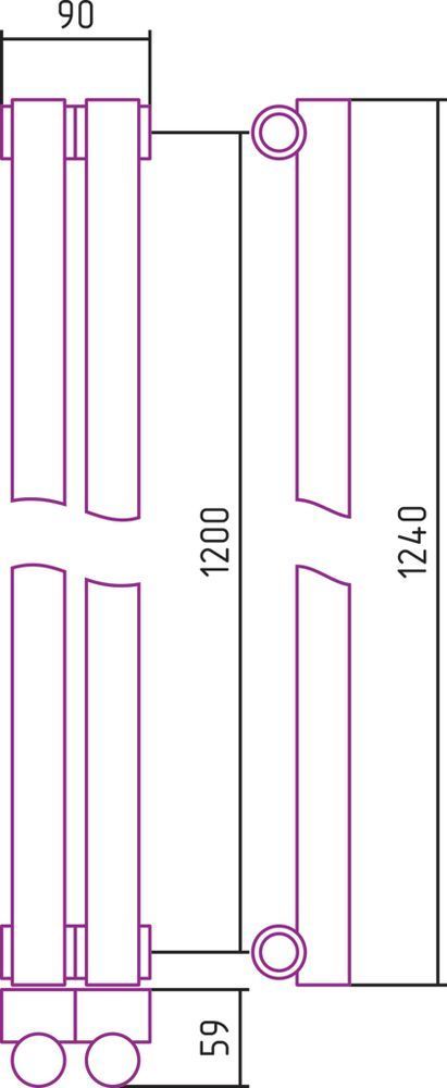 Радиатор Сунержа Эстет-1 90х1200 мм (2 секции) 00-0301-1202 универсальное подключение