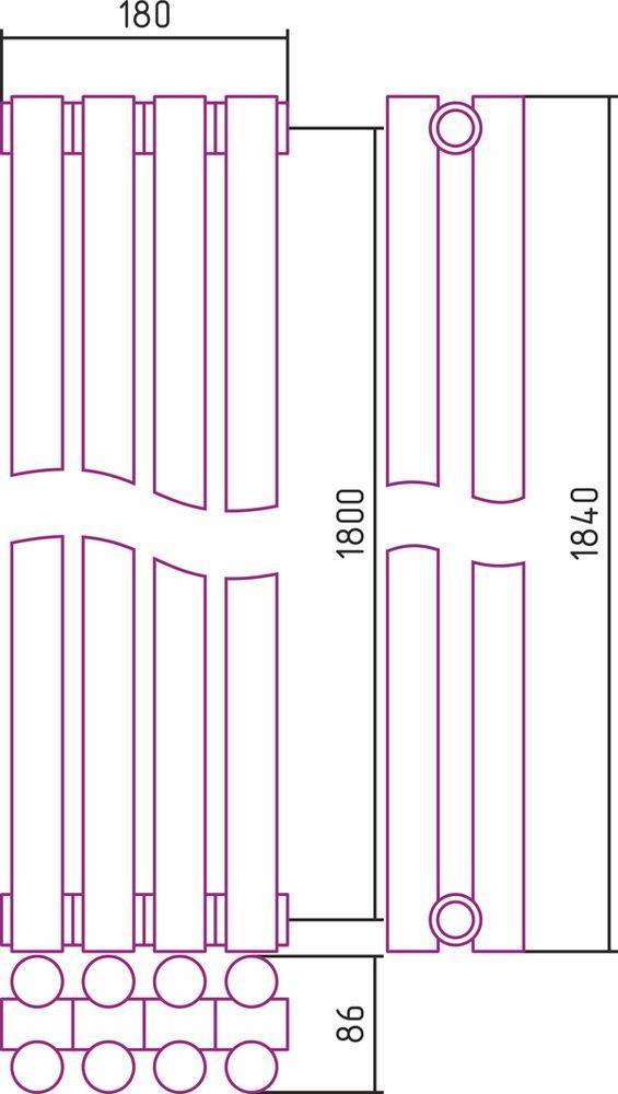 Радиатор Сунержа Эстет-11 180х1800 мм (4 секции) 00-0302-1804 универсальное подключение