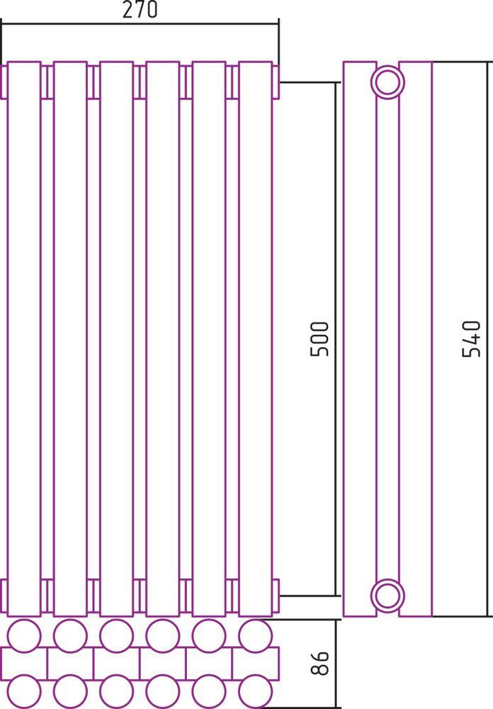 Радиатор Сунержа Эстет-11 270х500 мм (6 секций) 00-0302-5006 универсальное подключение