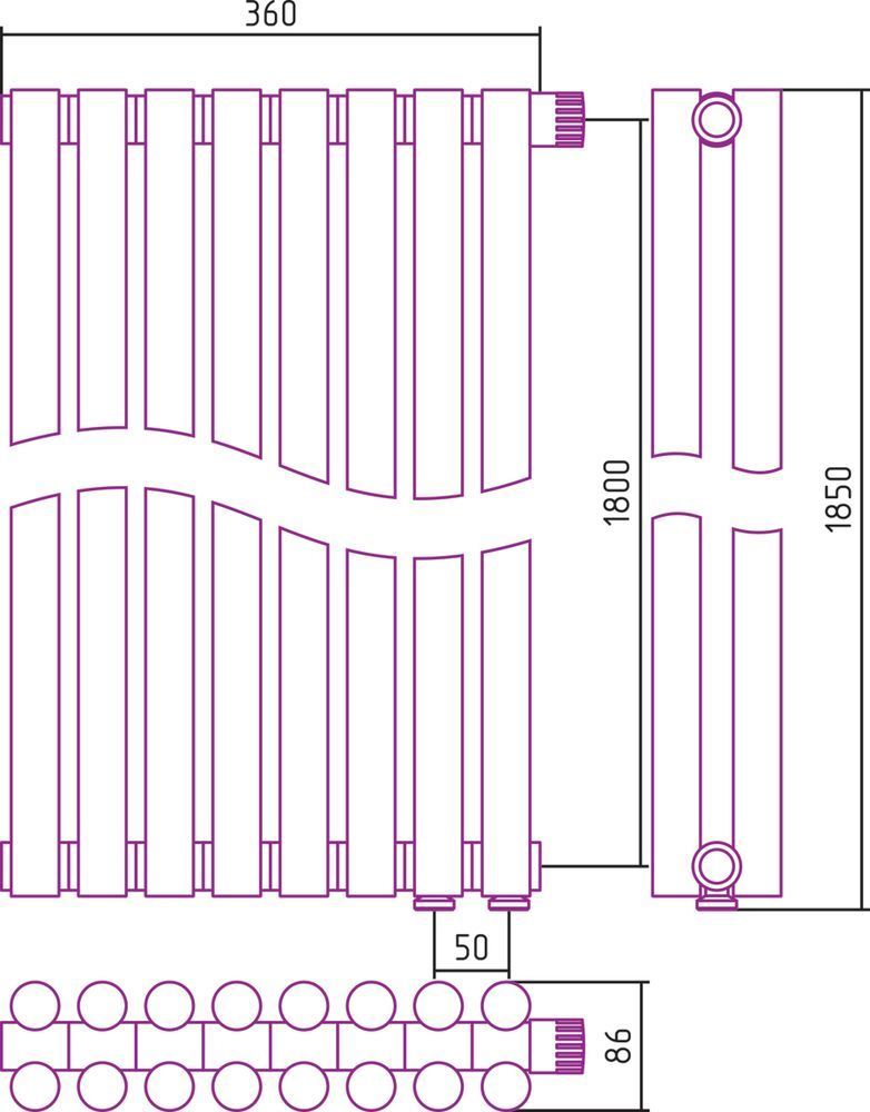 Радиатор Сунержа Эстет-11 360х1800 мм (8 секций) 00-0312-1808 нижнее правое подключение