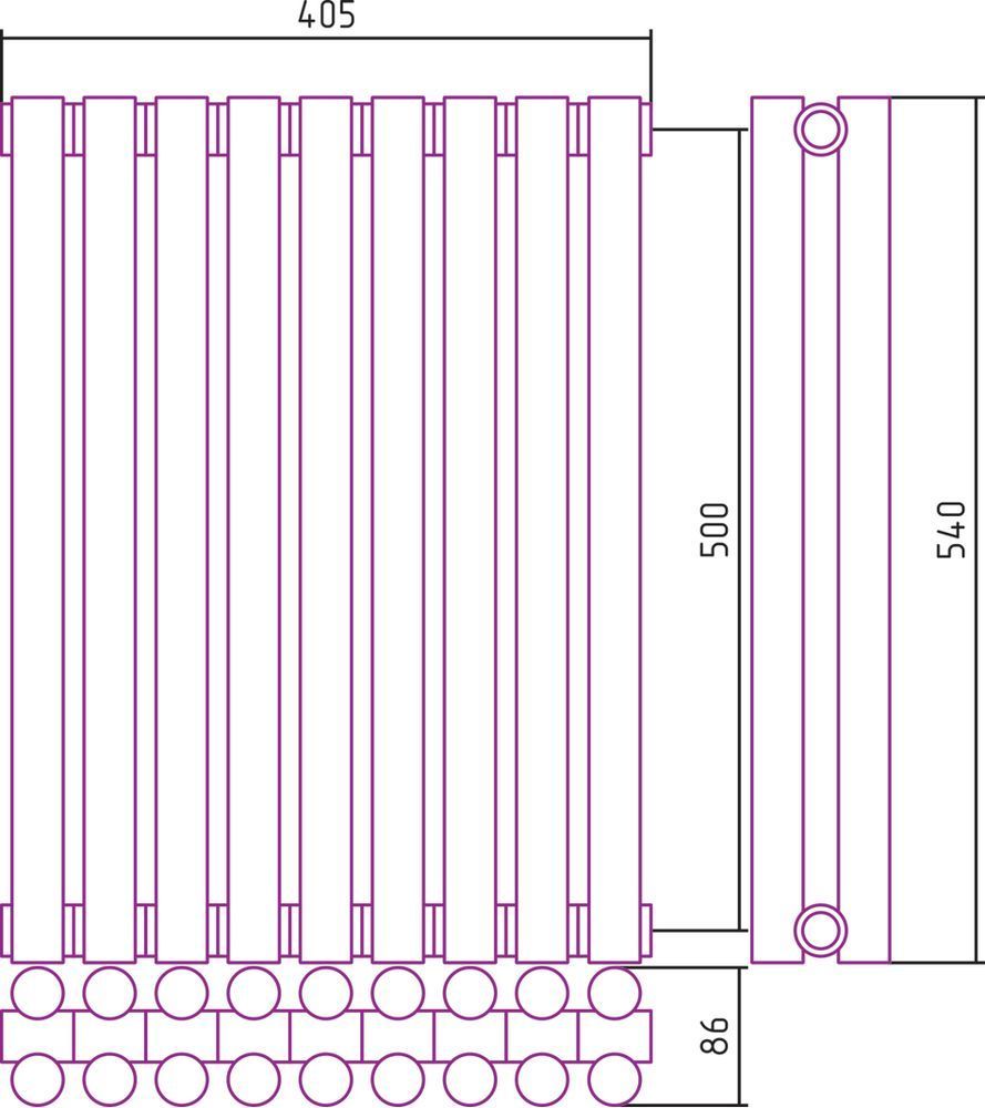 Радиатор Сунержа Эстет-11 405х500 мм (9 секций) 00-0302-5009 универсальное подключение