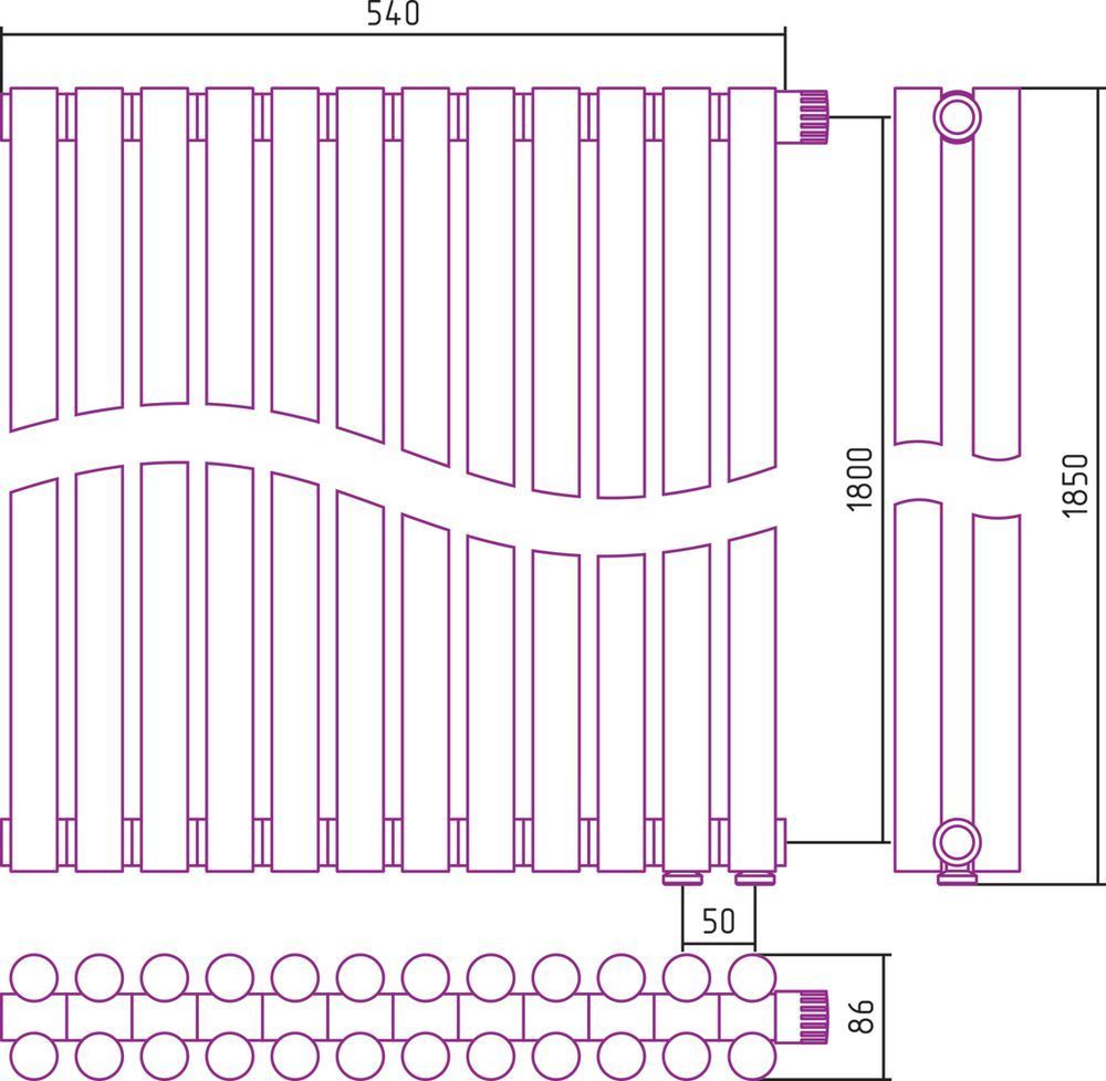 Радиатор Сунержа Эстет-11 540х1800 мм (12 секций) 00-0312-1812 нижнее правое подключение