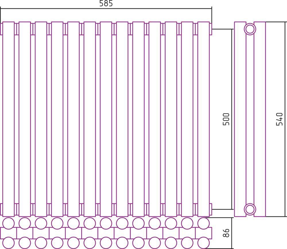 Радиатор Сунержа Эстет-11 585х500 мм (13 секций) 00-0302-5013 универсальное подключение