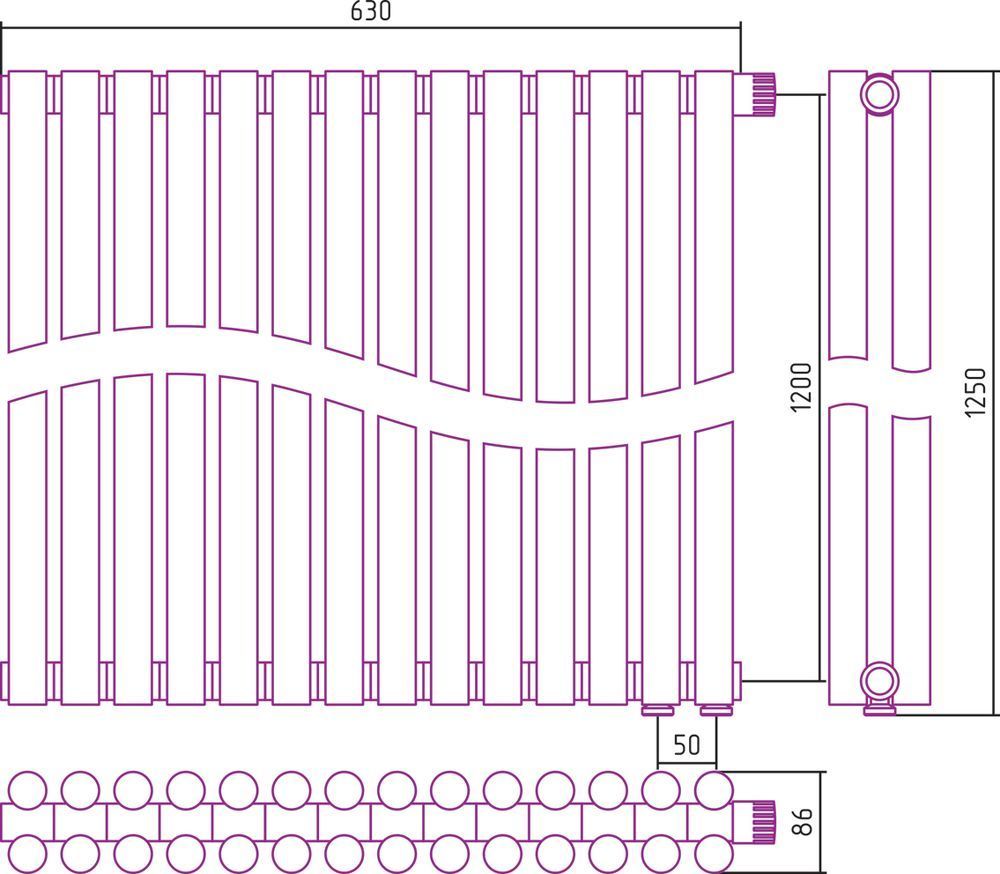 Радиатор Сунержа Эстет-11 630х1200 мм (14 секций) 00-0312-1214 нижнее правое подключение